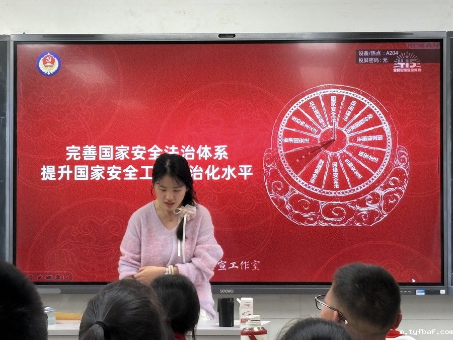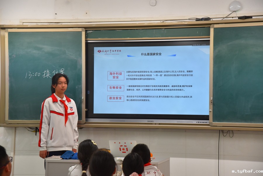 班会课期间,各班级积极参与活动,课堂形式丰富多样。有的班级通过播放国家安全教育宣传片,向同学们直观展示了国家安全涵盖的多个领域,如政治安全、国土安全、军事安全等,让同学们深刻认识到国家安全与每个人息息相关。有的班级组织了主题分享,同学们结合生活实际,分享对国家安全的理解与感悟,表达维护国家安全的决心。还有班级开展了知识问答竞赛,以赛促学,激发同学们学习国家安全知识的热情。在班会课中,老师和同学就身边的案例积极讨论,现场气氛热烈。通过这次活动,同学们不仅学到了丰富的国家安全知识,更增强了国家安全意识和责任感。